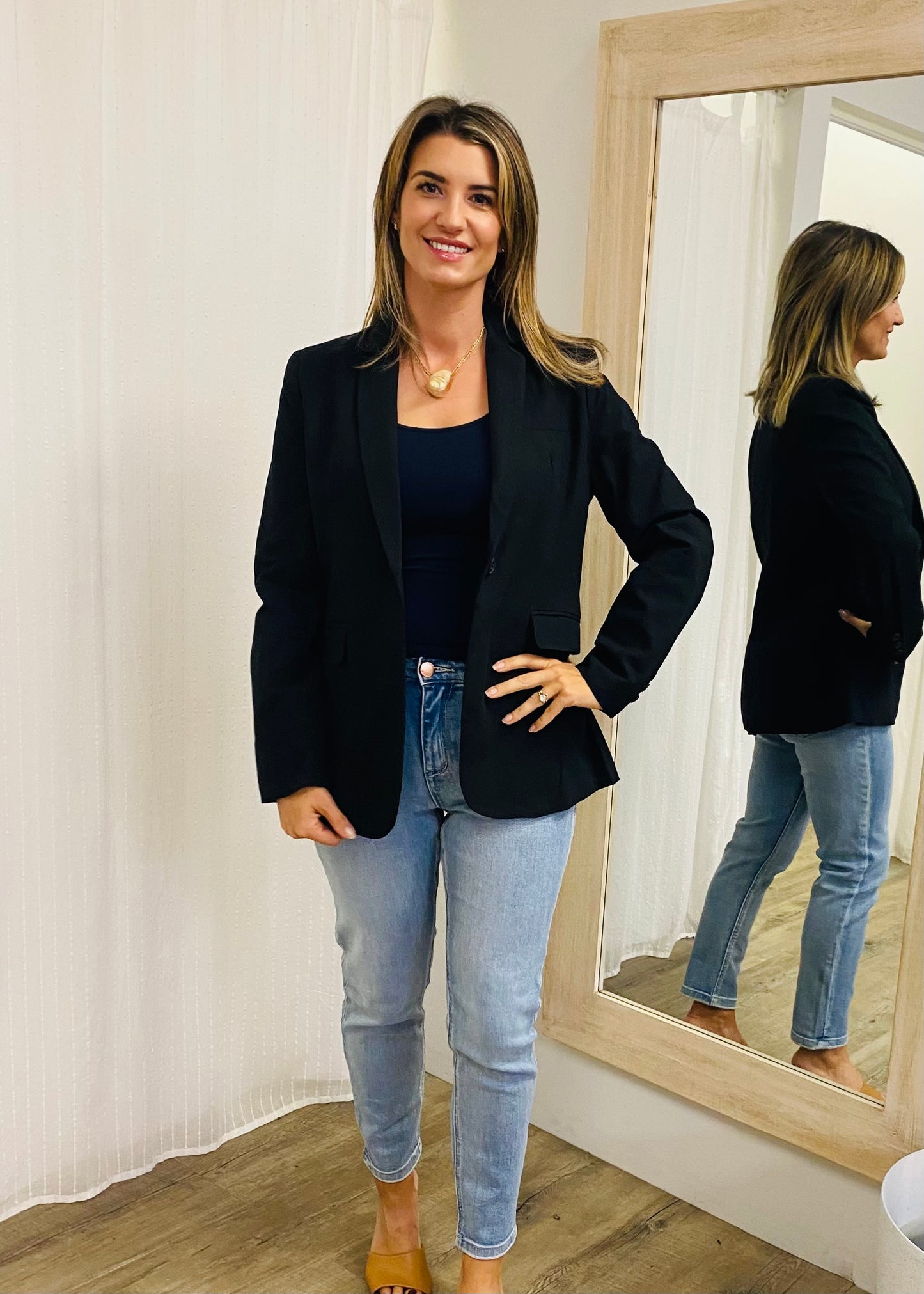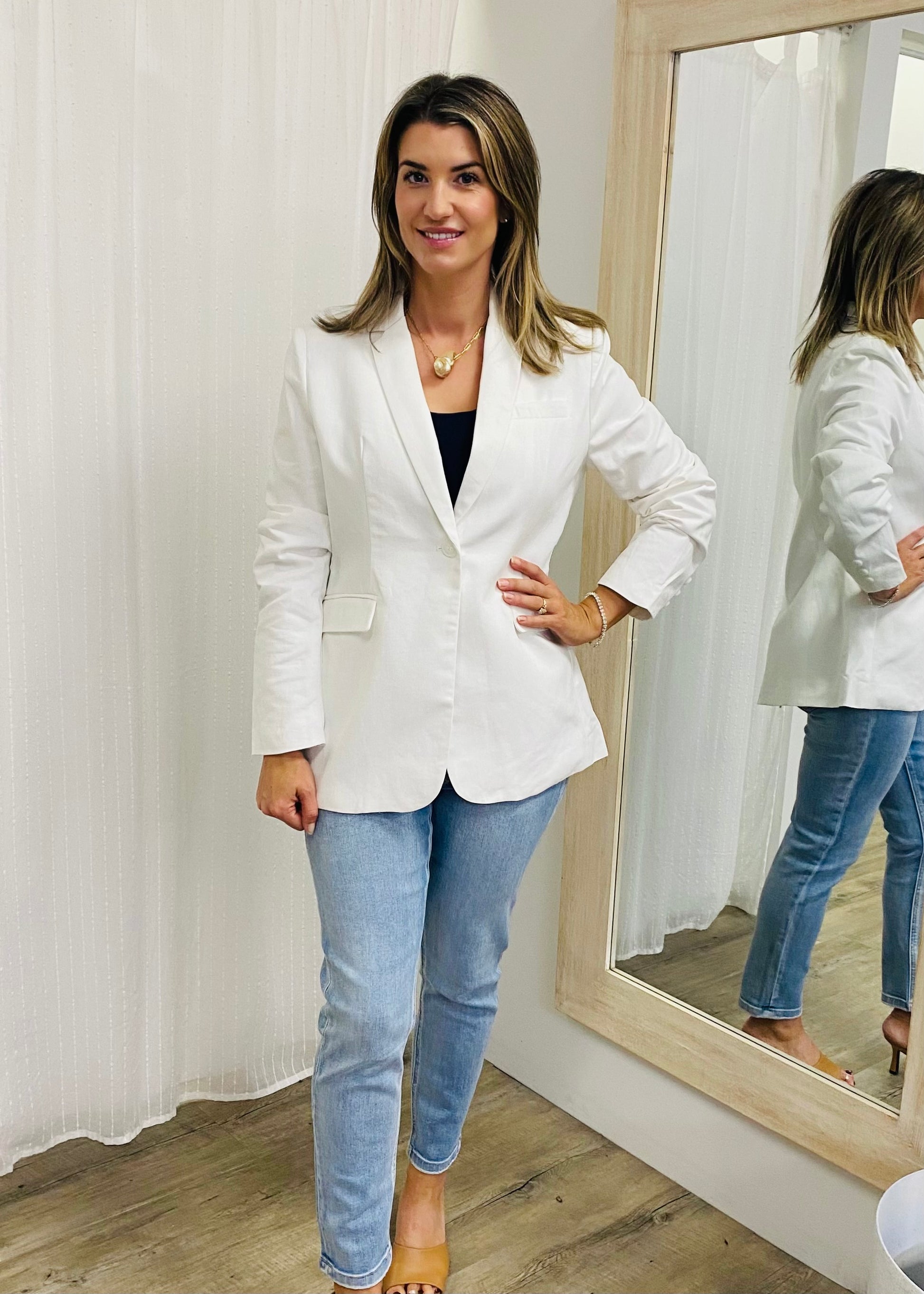Strut your stuff in the Claudett Blazer, made from 100% cotton and offered in timeless black and bright white. This blazer brings a lively touch to your wardrobe while staying sleek and stylish. Perfect for pairing with all your favorite pieces. Black is office ready, white looks great over your favourite dresses.