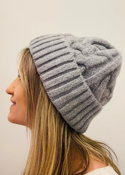 Embrace winter in style with the Cosmo Knit Beanie! Its bold cable knit texture brings a fun flair to your wardrobe, while the cosy fold-over cuff keeps your ears toasty and snug. Ideal for stacking on warmth with a cheerful twist!
