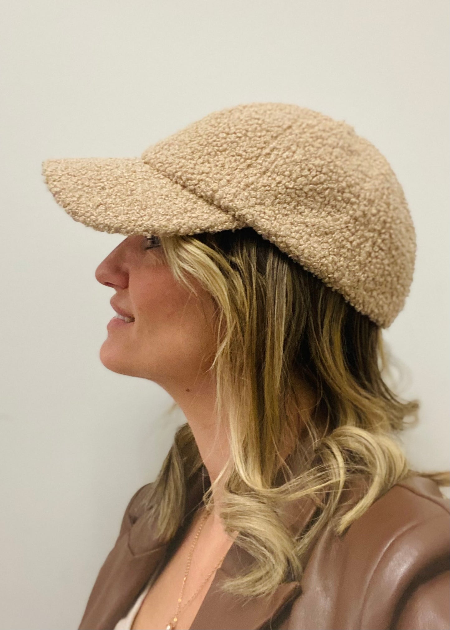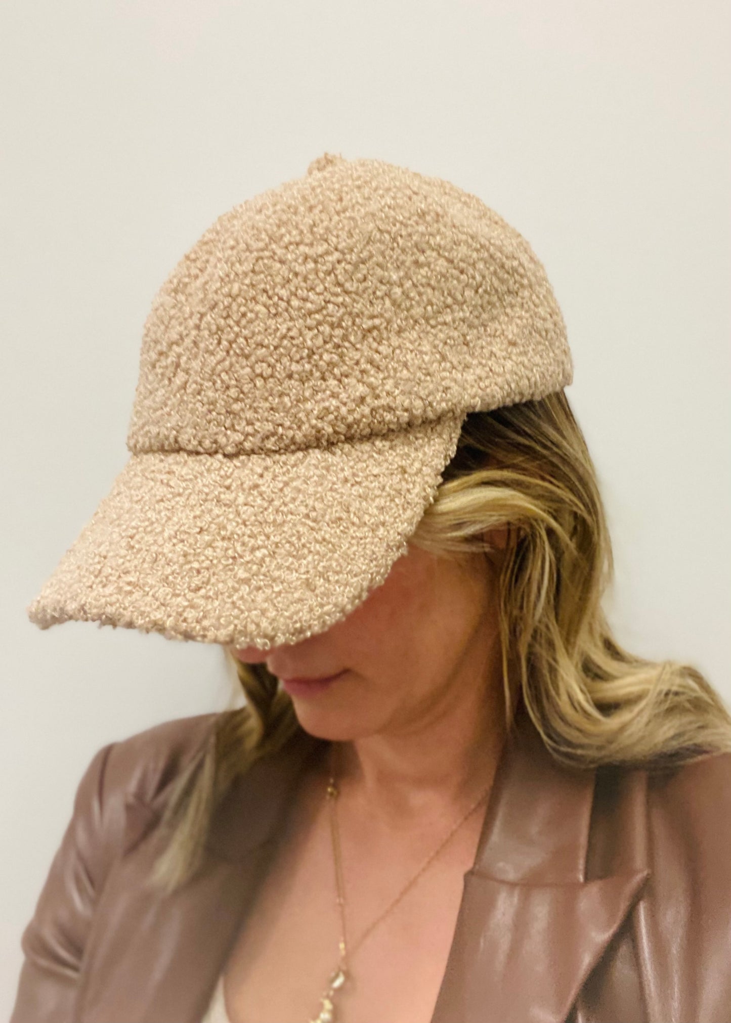 The Romney Cap is your new favorite sherpa accessory, blending warmth with playful flair. Its fluffy texture keeps you snug on cooler days, while the charming design adds a fun twist to any outfit.