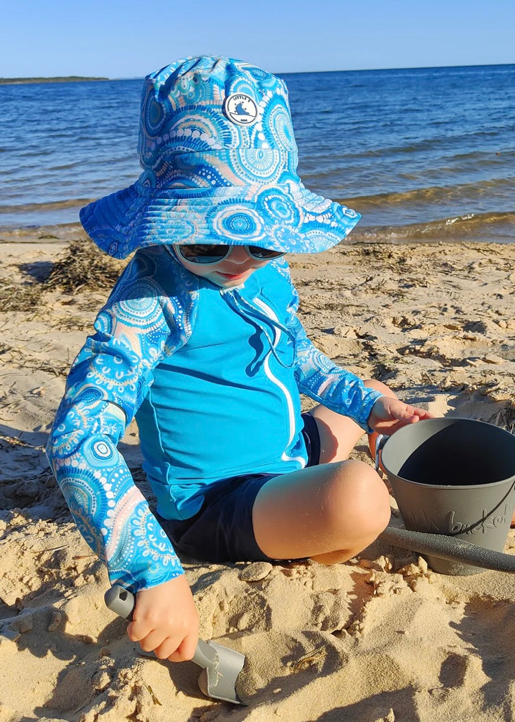 The gorgeous Called Home to the Ocean Print Long sleeve rashie will fit babies 6-12 months, it features a full-length zipper for easy changing, a lined front panel for extra warmth, a high neckline and long sleeves for excellent sun protection. This Long Sleeve Rashie offers excellent sun protection is rated to UPF50+.