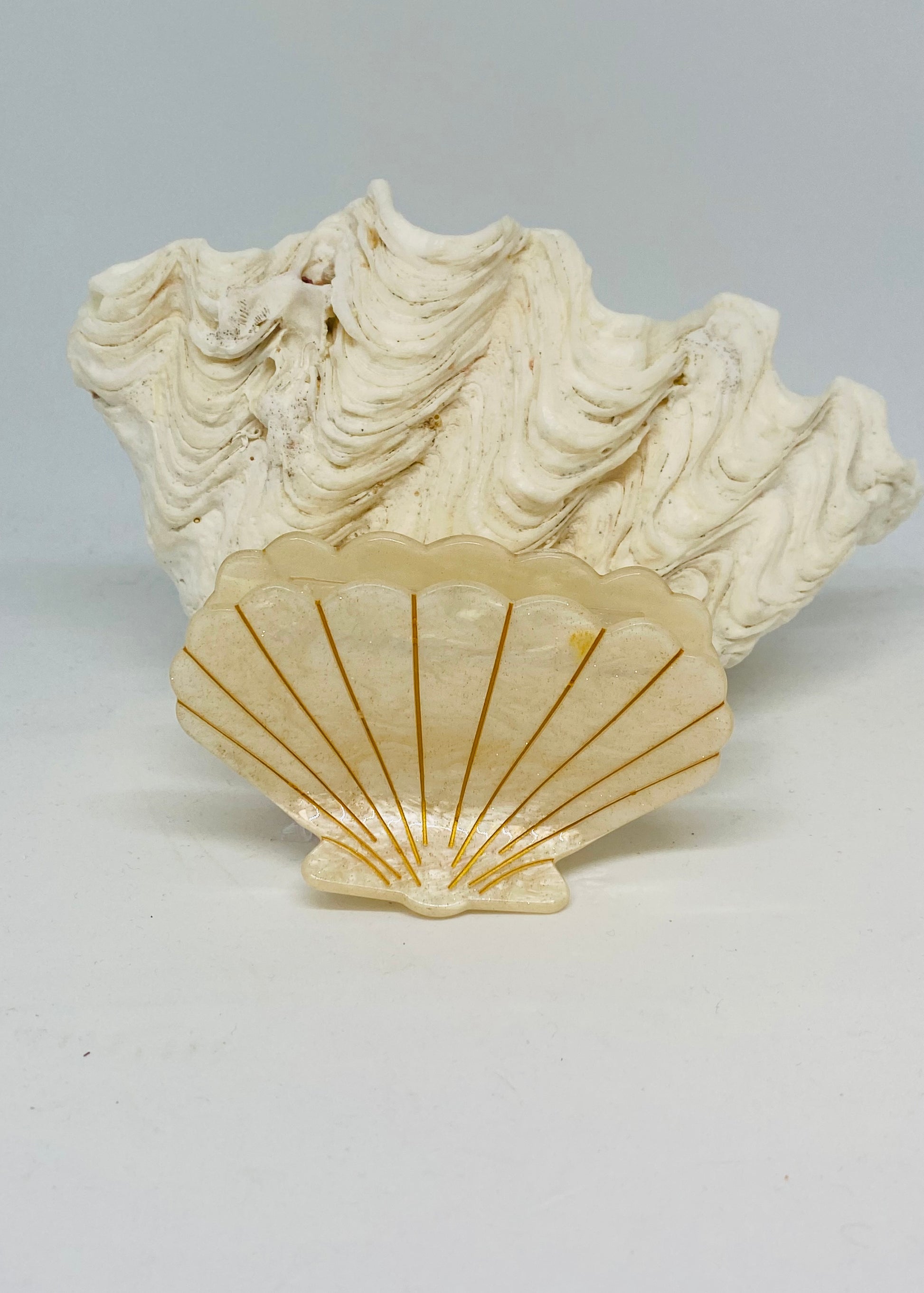 Our Clam Shell hair clip has a lustrous pearl look with a gold fleck. This hair clip is the perfect blend of functionality and fashion. Its robust grip ensures that your hair stays securely in place. The best summer accessory for your hair!