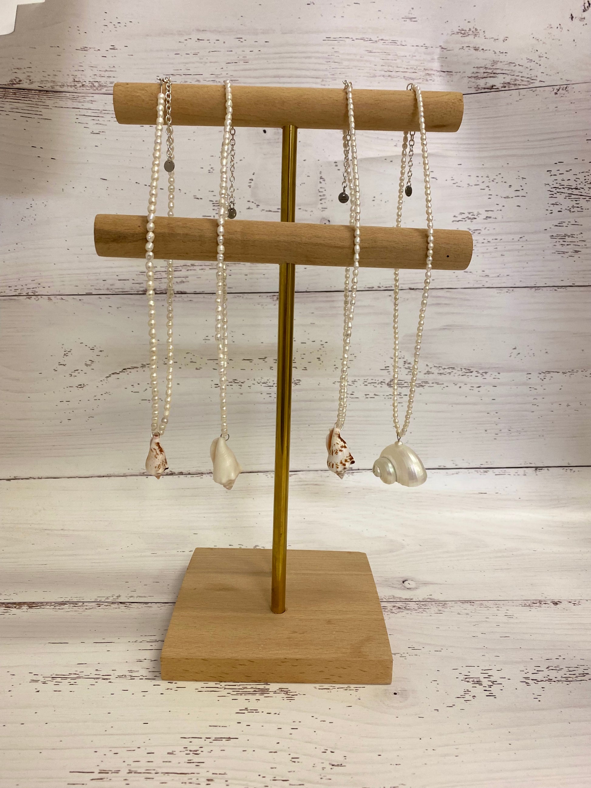 This refined necklace combines the lustrous beauty of a rice freshwater pearl with a naturally collected shell pendant, creating an understated yet striking piece. Perfect for those who appreciate artisanal craftsmanship, it brings coastal-inspired sophistication and timeless elegance to any occasion.